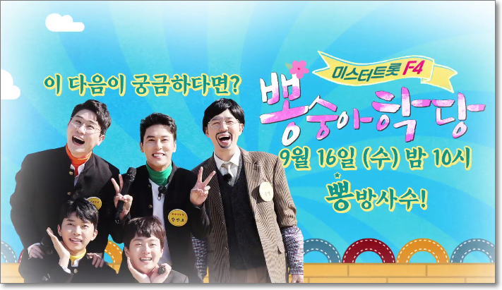 수요일 밤을 기다리셨나요? 뽕숭아학당 19회에서는 제 1회 트로트 육상선수권 대회가 개최됩니다. 트롯맨 F4의 가을 운동회라고 볼 수 있는데요. 이를 위해 8명의 신예 트롯맨이 함께합니다. 누가 출연하는지, 그리고 실시간 시청 방법 뿐 아니라 재방송 다시보기 방법을 아래에서 확인 바랍니다.