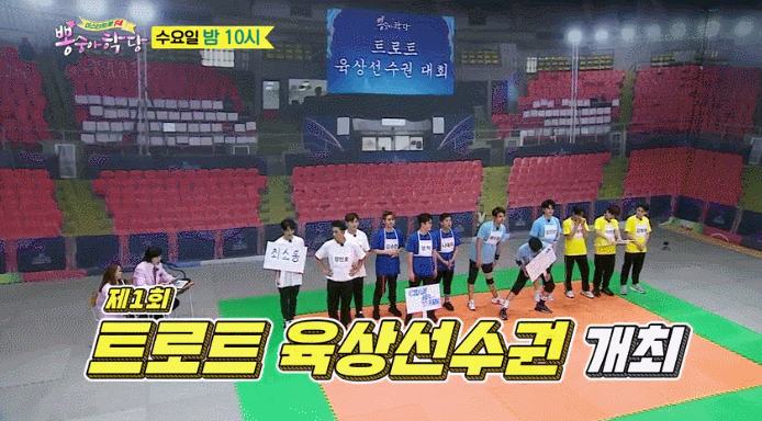 제1회 트로트 육상선수권 대회가 열립니다. 트롯맨f4 임영웅 영탁 이찬원 장민호를 비롯해 신예 트롯맨 8명이 나오는데요. 미스터트롯에서 봤던 그 멤버들, 콘서트에서 봤던 가수들을 여기서 볼 수 있습니다.
