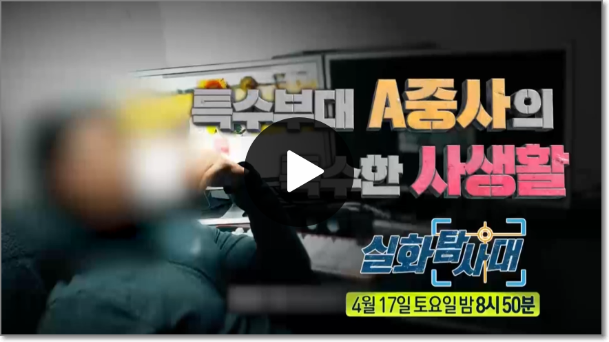 A중사의 숨겨진 민낯은 오는 17일(토) 밤 8시 50분 MBC '실화탐사대'에서 단독 보도될 예정입니다.