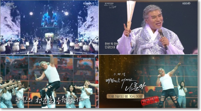 내게 애인이 생겼어요 테스형 등 신곡을 포함해서 자신의 히트곡과 애창곡을 30곡 넘게 불렀습니다 시청률도 대단했습니다 29%를 넘겼는데 올레tv 등에서는 실시간 시청률이 70%를 넘기도 했습니다