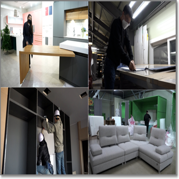 특히, 맞춤 가구 시공 현장은 그야말로 수평과의 싸움이다. 수평을 맞추지 않으면 가구가 금방 망가지거나 상처가 날 수 있기 때문에 제일 신경 쓰는 작업이다. 이미 만들어진 집에 맞춰 가구가 들어가기 때문에 현장에서 가구의 뒷 판을 자르고 오리고 붙이는 일은 부지기수! 수납장도 크고 무겁기 때문에 팀원끼리의 호흡도 굉장히 중요하다. 키가 큰 고객을 위해 싱크대의 높이를 높이거나, 싱크대를 숨겼다 보였다 할 수 있는 문을 만들고 벽처럼 보이게 제작한 복도 수납장 까지! 내 생활에 딱! 맞춘 가구의 제작부터 설치 현장을 소개한다.