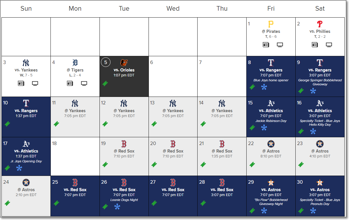 Toronto Blue Jays Schedule