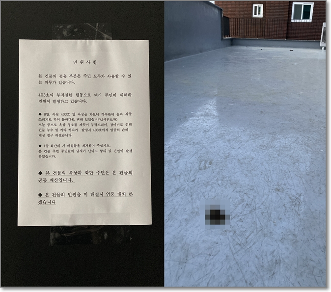 옥상 개똥 좀 치워달라고...