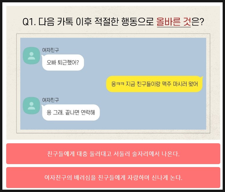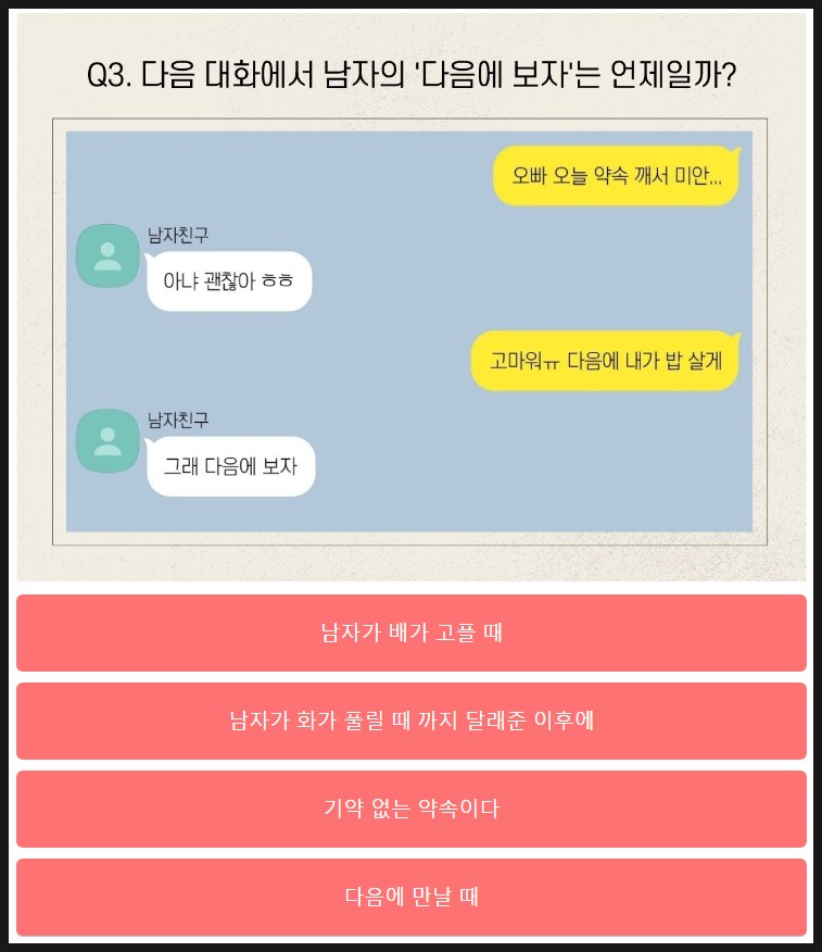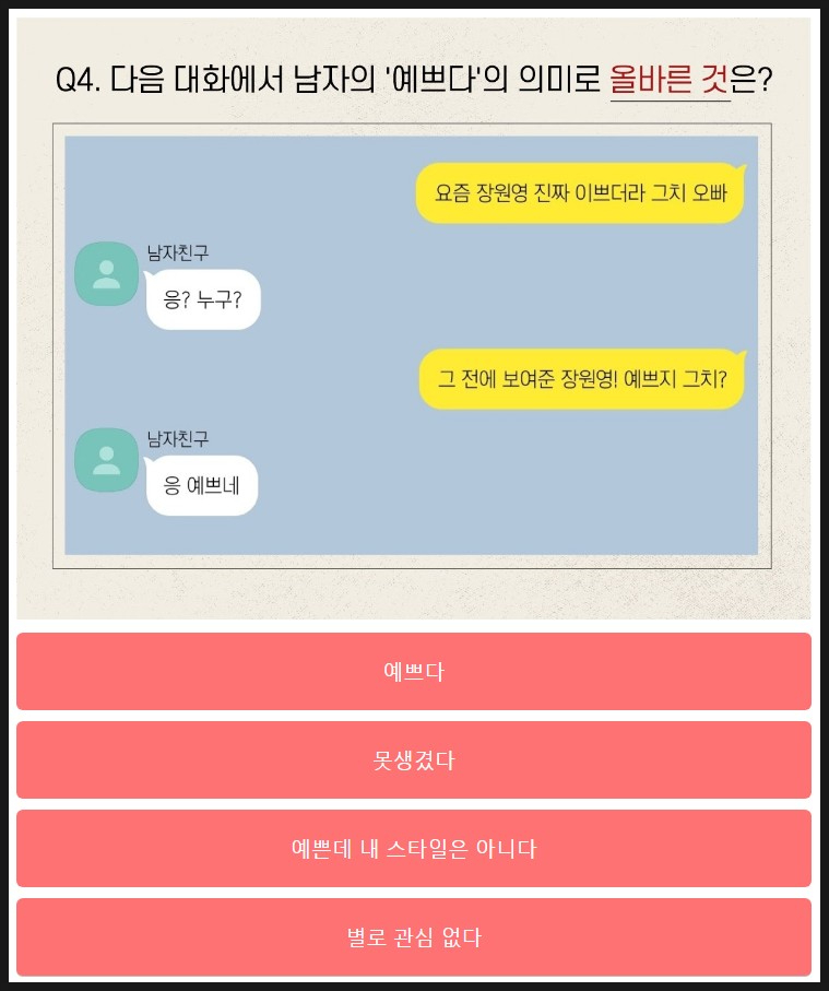 다음은 여자로 선택할 때 나오는 문제를 살펴볼께요.