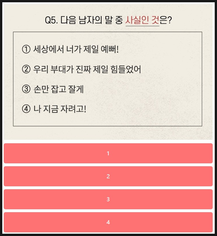 지금까지 연애 언어 능력고사 게임 소개와 정답을 알려드렸습니다.