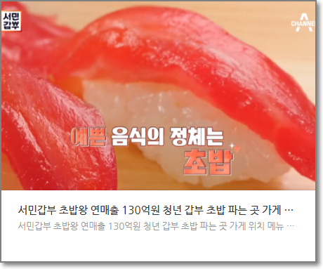 서민갑부 초밥 정보 및 구매는 아래를 통해서 하실 수 있습니다.