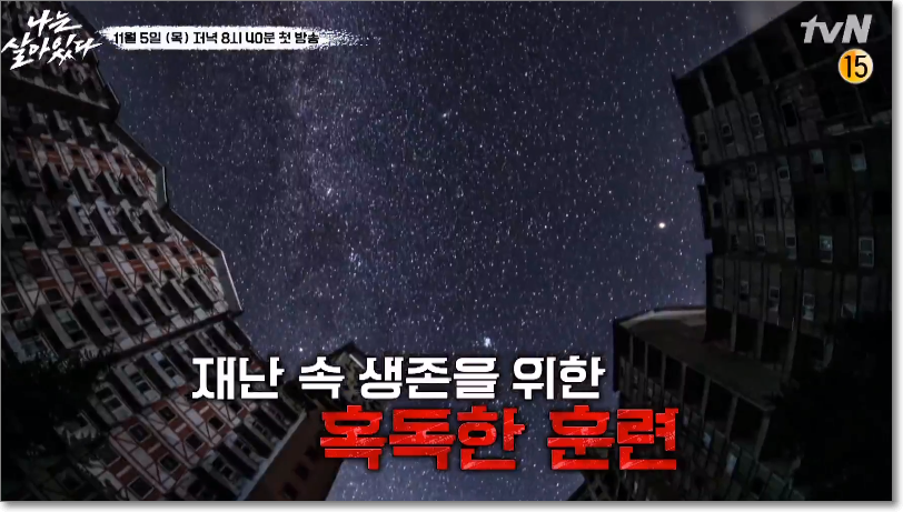출연진은 예고 없이 찾아오는 재난에 대비할 수 있도록 빌딩 숲에서부터 산과 바다까지 넘나들며 생존 수업을 받습니다.