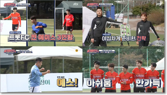뭉쳐야찬다 70회에서 미스터트롯FC와 어쩌다FC의 콜라보 경기가 이어집니다.
