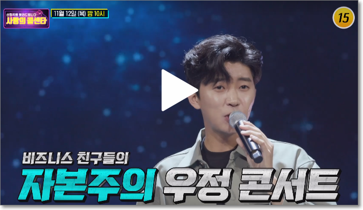 그런데 이들의 우정은 상품과 홍보를 목표로 계약우정으로 변하고 맙니다. 상품의 크기가 우정의 크기라는 웃지 못할 상황에 부딪히는데요. 이들의 자본주의 우정 콘서트가 어떤 결론을 맞이하게 될지 궁금합니다.