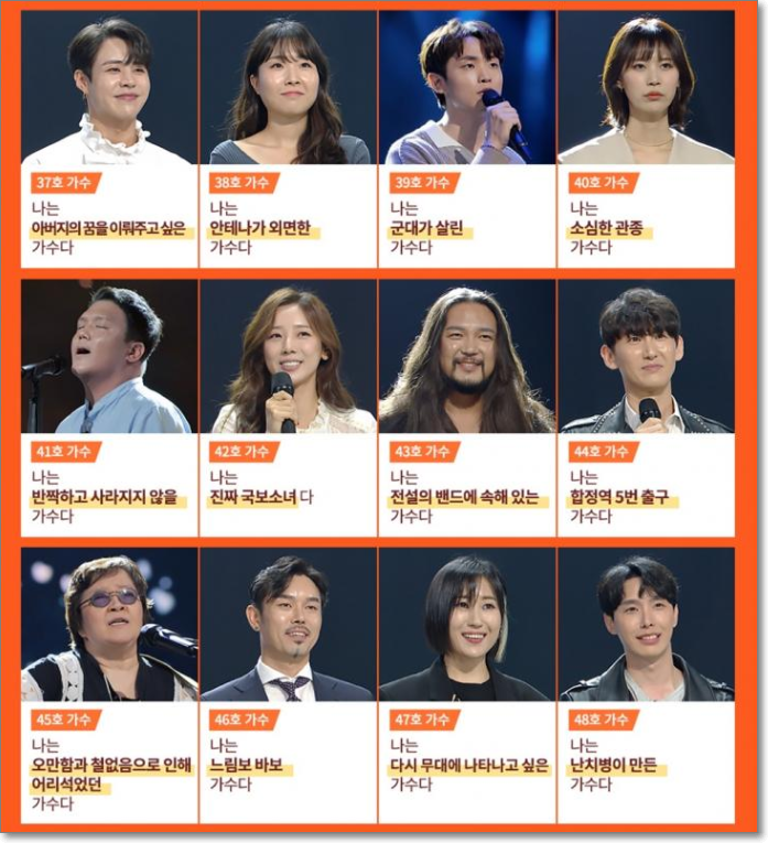 싱어게인 참가자 출연자 안내