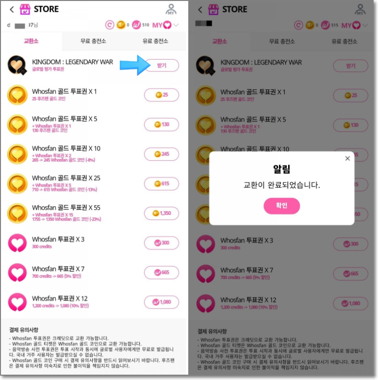 투표는 후즈팬(Whosfan) 어플을 통해 할 수 있습니다.