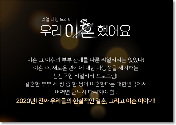 우리 이혼했어요 재방송 결혼, 연애와 관련한 예능에 이어 이제는 이혼 부부 재결한 관찰 예능이 탄생했습니다. 과연 이것이 가능할까 싶기도 한데요. 우이혼은 헤어진 부부가 다시 만나 한 집