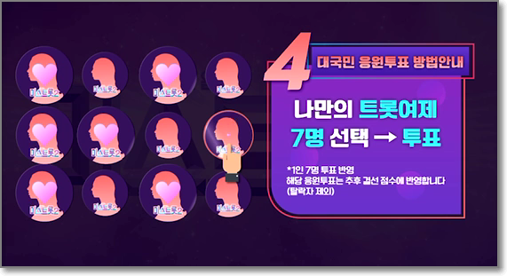 5. 나만의 트롯여제 7명 선택 -> 투표