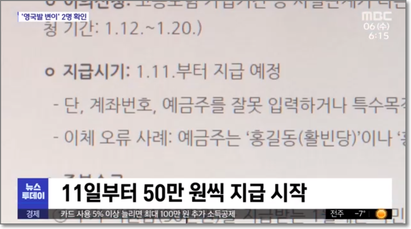 2021.1.11.부터 지급 예정(1월 15일까지 완료 예정)