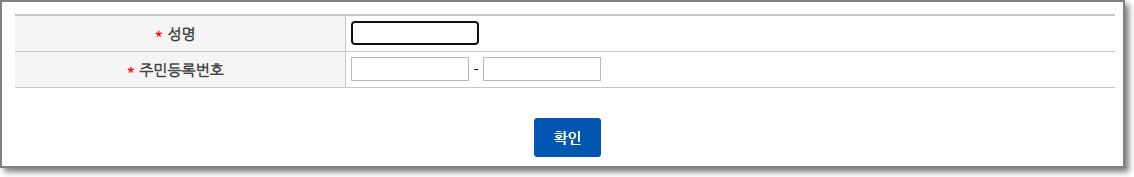②안내사항을 읽어본 후, 성명과 주민등록번호란에 본인 정보를 입력 후 본인인증을 거칩니다.