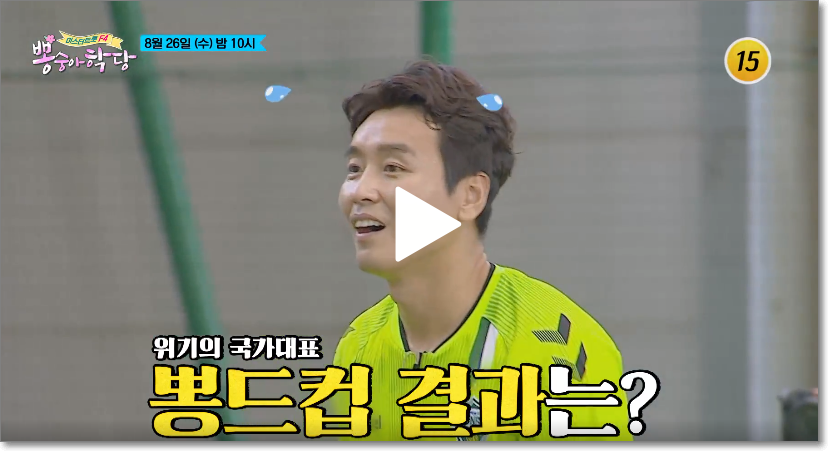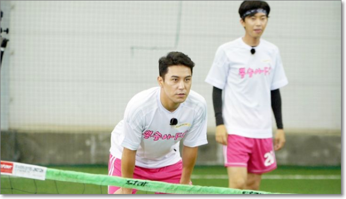 뭉쳐야 찬다에서 멋지고 우아한 슈팅장면을 보여준 그가 어떤 발리슛을 했는지 기대가 됩니다. 그리고 대망의 족구 경기를 하는데요. 짜장면 100그릇 내기를 했습니다.