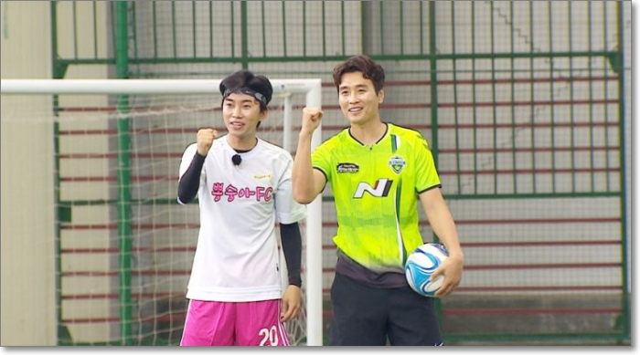 그리고 실제 대결에 앞서 그는 흑기사 한 명을 요청했는데, 이 때 등장한 사람은 트롯계의 왕자 신유였는데요. 신유는 자신의 히트곡 시계바늘을 부르며 등장했습니다. 알고 보니 학창시절 청소년 국가대표로 활동했었다고 하는데요. 과연 축구 실력은 어떨지 궁금합니다.