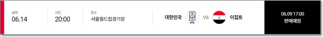 대한민국 대표팀의 6월 A매치 경기 티켓 오픈이 6월 9일 오후 5시에 있습니다. 아래에서 이집트와의 평가전 티켓 예매방법을 안내드리니 아래를 참고 바랍니다.
