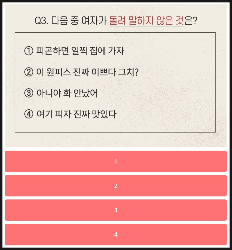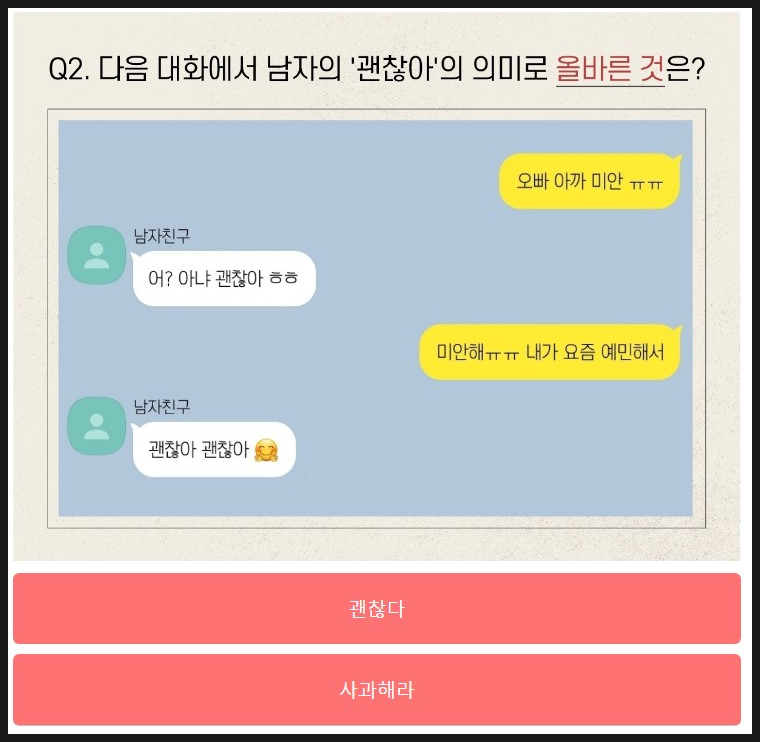 다음은 여자로 선택할 때 나오는 문제를 살펴볼께요.