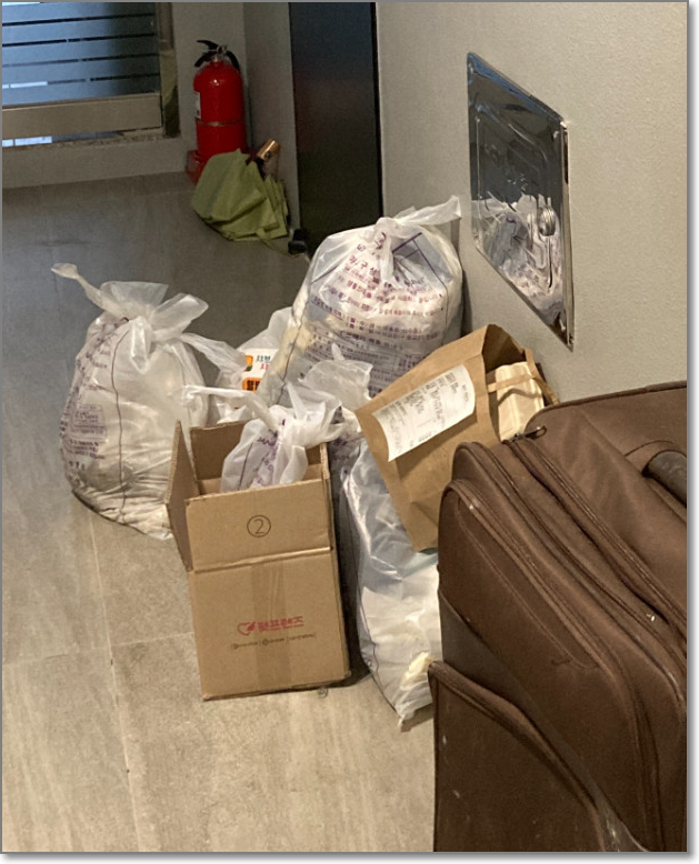 그리고, 배달음식 용기는 복도에 방치하지 말고 씻어서 분리수거해달라 부탁하니 복도가 아닌 분리수거장에 음식물 들어있는 용기를 아무렇게나 내다버려 엉망이랍니다.