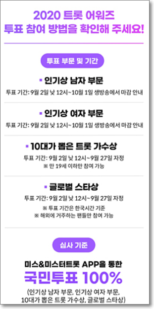 2020 트롯 어워즈 투표는 미스&미스터트롯 어플에서만 가능합니다.