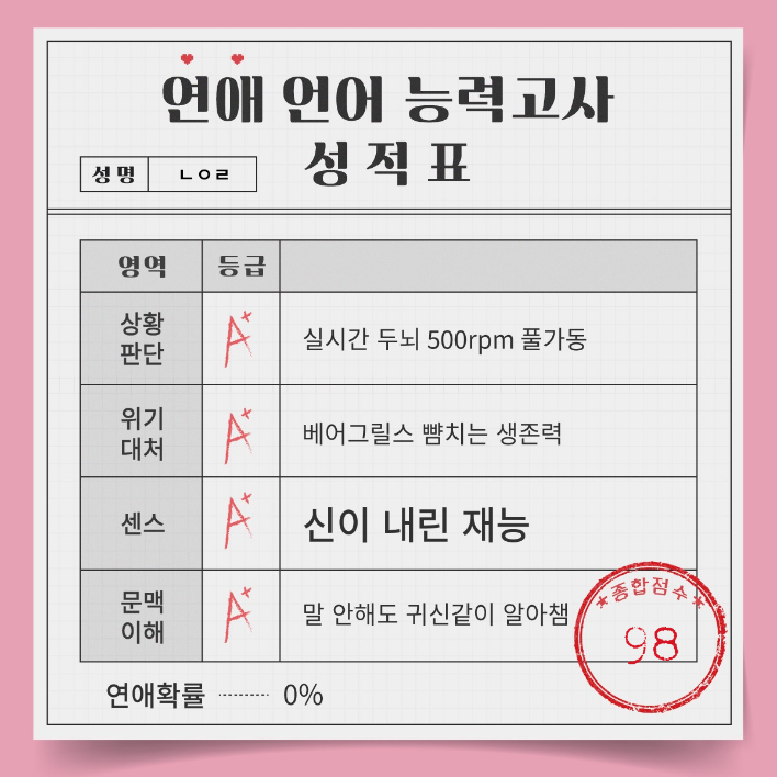 오늘은 간단하게 커플분들이나 썸타시는 분들, 친구들과 함께 하기 좋은 연애 언어 능력고사라는 것을 알려드리려고 합니다.