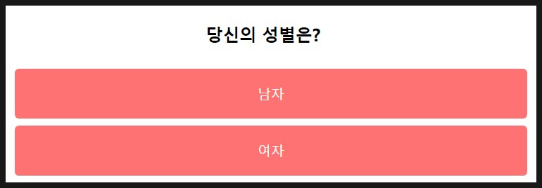 다음 성별을 선택하게 되는데요. 성별에 따라 질문이 달라집니다.