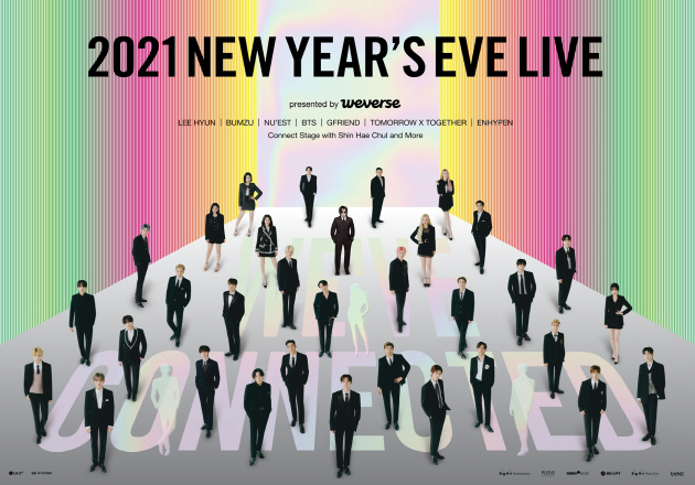 31일 오후 9시 30분부터 경기도 고양시 킨텍스에서 열리는 ‘2021 NEW YEAR’S EVE LIVE’에는 빅히트 레이블즈 소속 아티스트인 이현, 범주, 뉴이스트, 방탄소년단, 여자친구, 투모로우바이투게더, 엔하이픈(ENHYPEN) 등이 참여합니다.