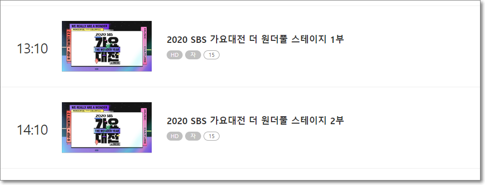 2020 SBS 가요대전 재방송 다시보기 시청 안내드립니다. 본방송을 놓친 분들은 아래를 통해 재방송 및 다시보기를 할 수 있습니다. 해당 내용 참고 바랍니다.