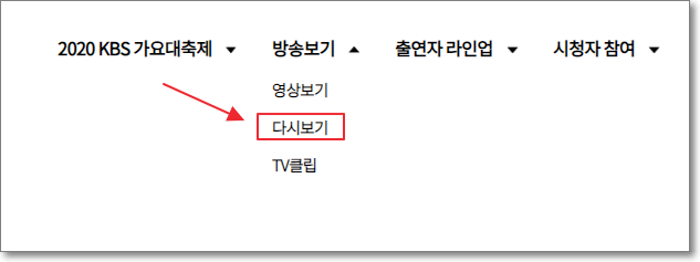 KBS 온에어 사이트에 접속한 후 KBS 가요대축제 사이트를 찾을 수 있습니다.