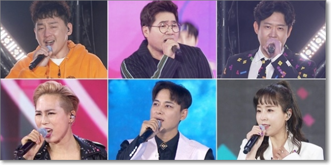 나인티6는 현진영, 김조한, 천명훈, 서문탁, 이지훈, 신지로 구성되었는데요. 콘서트장을 방불케하는 열기를 보여줬습니다. 솔리드 '천생연분'의 원곡자 김조한이 동장하자 모두 댄스와 랩파트를 소화하는 깜짝 컬래버 무대도 보여줬는데요.