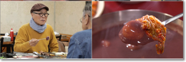 먼저 두 사람은 100년 이상의 전통이 있는 샘고을시장을 방문했습니다. 여기서 향수를 불러일으키는 팥죽을 만나는데요. 식객은 어린 시절 추억의 음식으로 팥죽을 꼽아왔었죠. 그의 입맛을 사로잡은 20년 전통의 팥죽을 맛보게 됩니다.
