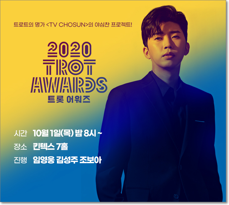 트롯 어워즈는 10월 1일 목요일 저녁 8시에 tv 조선에서 생중계합니다.