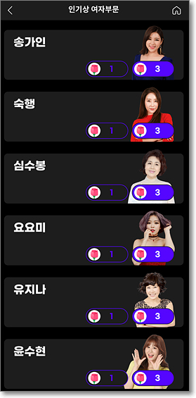 ▶무료로 장미를 받으려면 매일 출석을 진행하거나 광고를 시청할 경우 장미를 줍니다. 하루에 한 부문당 장미 10송이 투표 가능합니다.