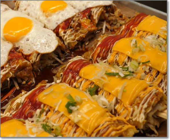 100% 자연치즈 눈꽃치즈를 올린 오꼬노미야끼